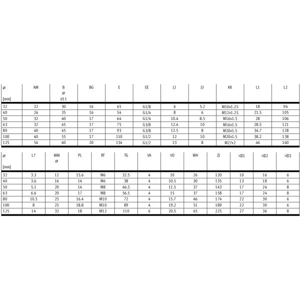 | Optional square/through piston rod variants (Q/S2/K10) | |